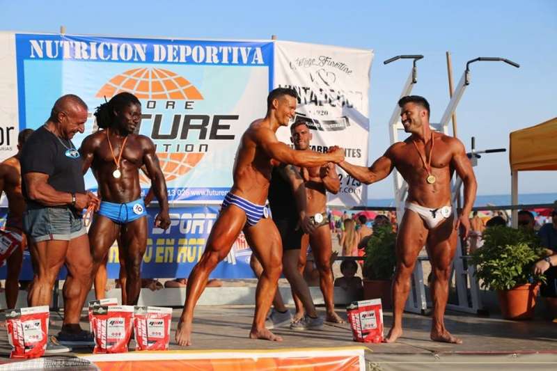 El delegado municipal de Deportes, José Antonio Medina Sánchez, acompañó a la organización en la entrega de trofeos de este circuito de verano nacional FAFF FEFF, que incluía las categorías Mens Short, Mens Phisique, Bikini y Wellness.