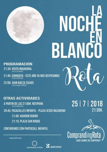 Organizada por el Ayuntamiento de Rota y Aeciro, esta propuesta llega tras la mejor acogida que tuvo el año pasado con respecto a ediciones pasadas, donde los comercios se animaron más, abrieron sus puertas al público a horas en las que normalmente ya están cerradas y los ciudadanos respondieron bien, sobre todo, a las actuaciones que encontraron por la calle, aunque que muchos comercios sacaran percheros y stands a la calle les ayudó a promocionarse.  Forma parte del Plan de Dinamización del Comercio que desarrolla el Ayuntamiento de Rota bajo el lema "ComprandingRota".