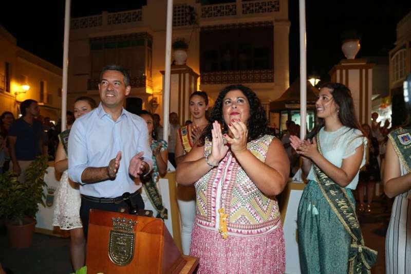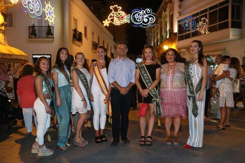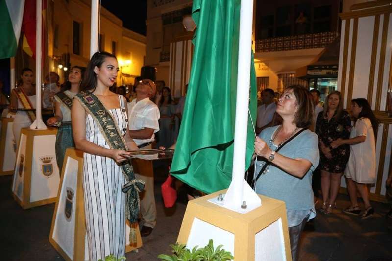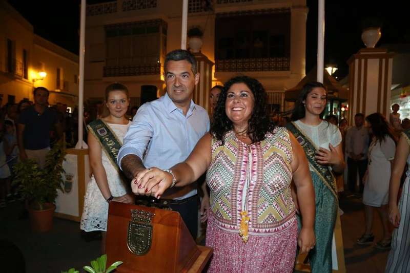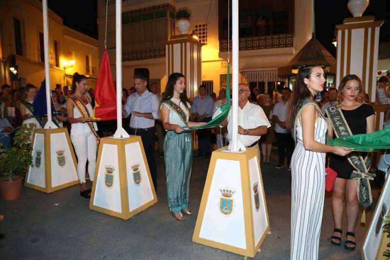 Ayer, a las diez de la noche, la zona del centro se engalanaba con el encendido del alumbrado extraordinario que decora las principales calles del casco urbano y que dieron realce a una noche en la que el viento de levante también fue protagonista. Al margen de esta inclemencia, difícil de controlar, las autoridades locales participaron en el acto institucional de inauguración con la izada de banderas de Rota, Andalucía, España y la Unión Europea, que ondearán en la plaza de San Roque hasta el 5 de agosto. Fueron el alcalde de Rota, Javier Ruiz, el presidente de la Tertulia Flamenca "Viejos Agujetas", Antonio Bergalo, que esta misma tarde recibirá el galardón de la Urta de Oro, Francisco Javier Campoy, en representación de "Margarita La Fresca" patrocinador del cartel de esta fiesta, y María del Carmen Bernal Patino, representante de la mujer en el mundo de la hostelería, los encargados de izar las banderas que fueron portadas por las damas del Rosario al son del himno nacional que interpretó la banda municipal "Maestro Enrique Galán".
