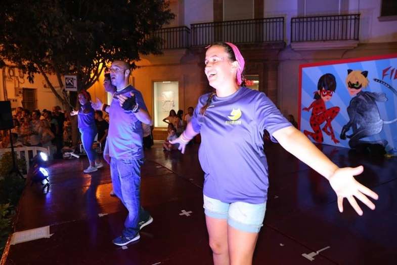 Los primeros en disfrutar fueron los más pequeños gracias al espectáculo que comenzó a las 21.00 horas en la plaza de España con cantajuegos, sketch infantil y mascotas. Más de una hora de animación infantil que mantuvo a los niños que se acercaron a este punto de la localidad muy animados, con canciones y bailes conocidos. Una plaza de España llena y muy ambientada que mañana sábado volverá a estarlo con la compañía Baby Radio que ofrecerá el espectáculo infantil "Anímate y baila". Comenzará a las 9 de la noche, misma hora en la que el domingo dará comienzo un nuevo espectáculo infantil "Circo Alas" en el mismo escenario.