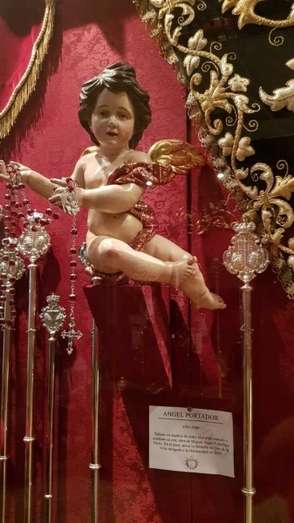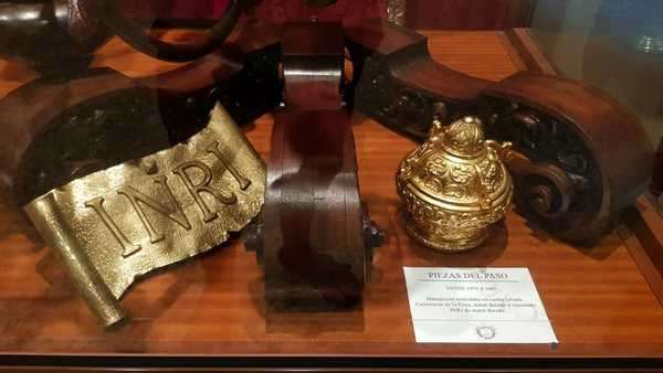 Así, en esta jornada de puertas abiertas, se podrán ver diferentes objetos que forman parte de la dolorosa hermandad roteña. Desde llamadores, estandartes, bocinas, pinturas, libro de reglas o figuras a menor escala e incluso el paso que procesiona cada tarde de Jueves Santo y que ha sido portado a través de la historia por sus costaleros.