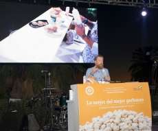 Los 260 asistentes disfrutaron de un cocktail de bienvenida con degustación de productos andaluces y propuestas gastronómicas locales. También se desarrolló un showcooking en directo con la participación del cocinero Daniel del Toro quien preparó dos propuestas de uso del Garbanzo de Escacena en la nueva cocina.