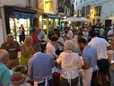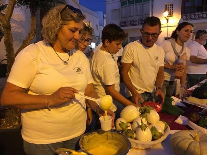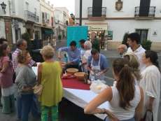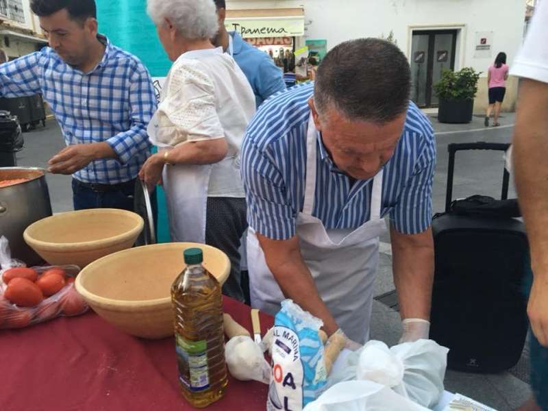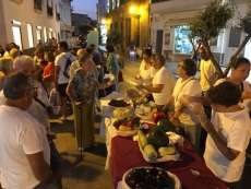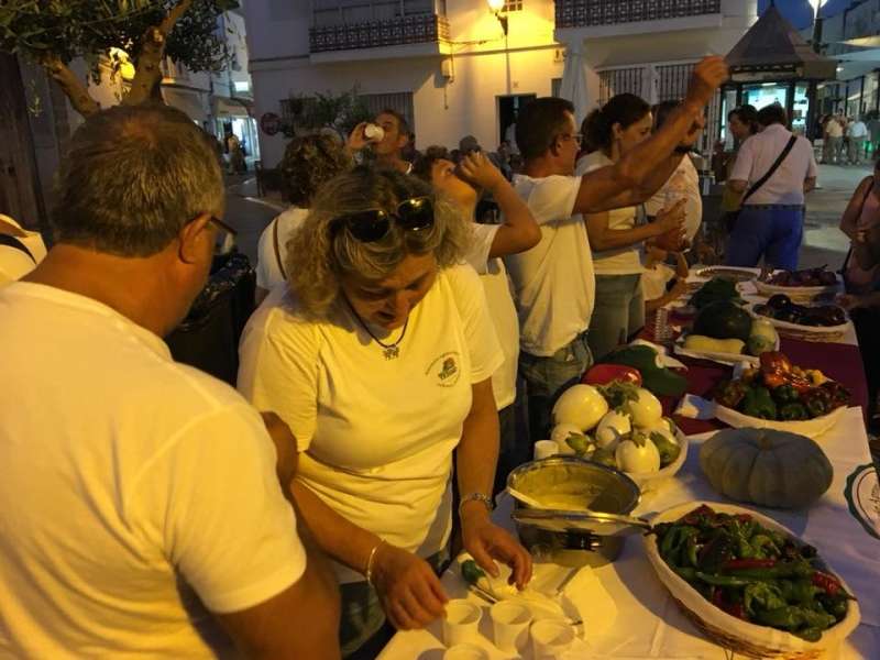Buena aceptación tuvieron los stands donde se podía degustar el típico arranque, elaborado por voluntarios de la "Cocina solidaria" y de la delegación del Mayor que además hicieron una demostración en directo de cómo hacer esta receta sencilla y sana basada en productos de la huerta. El público que pasaba por la plaza de Andalucía esperó pacientemente a que se repartieran las tapas y disfrutó de este plato tan local como hicieron con otros que en el otro extremo de la calle, en la plaza San Roque, ofrecía la asociación "Huertos Tehigo" con su sopa de calabaza, mermelada de berenjenas y gazpacho. La Tintilla o un taller infantil de elaboración de pizzas completaron la propuesta de la noche que se quedó algo corta de público.