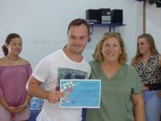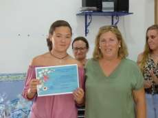 Hoy el ambiente era festivo y los alumnos de esta escuela veraniega, de entre 7 y 42 años, han recogido sus correspondientes diplomas de manos de la diputada provincial, Isabel Armario, los tenientes de alcalde Encarna Niño Rico y Antonio Franco García, la delegada municipal de Educación, Esther García, y miembros de la delegación de Participación Ciudadana, que apoyando la labor de esta entidad y de los padres y madres de los chicos, han querido estar presentes en el sencillo acto.