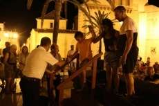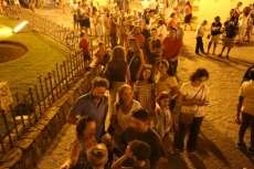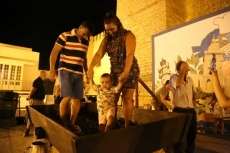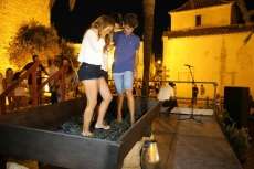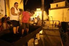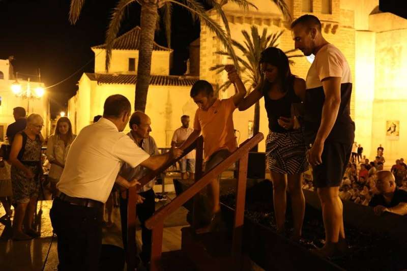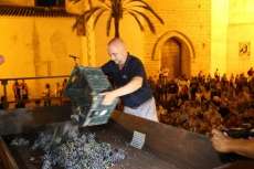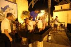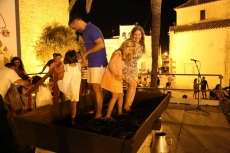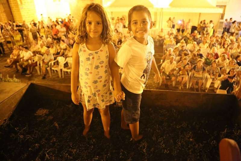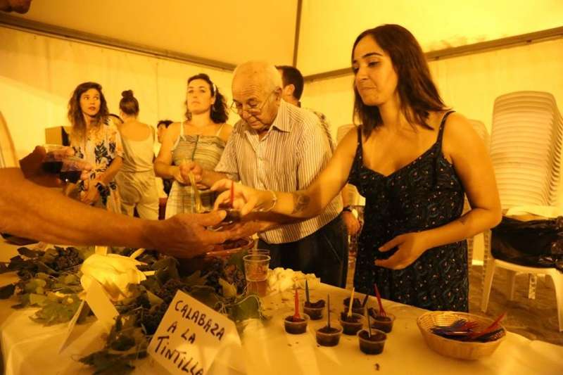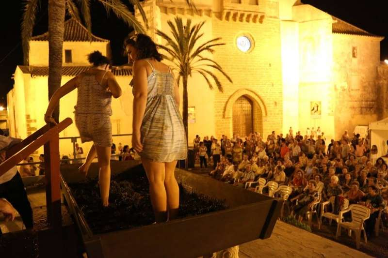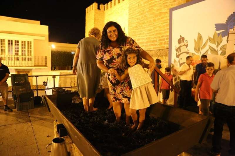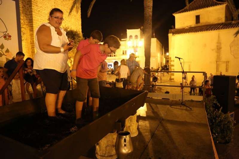 Sobre las nueve de la noche ya se veía el ambiente que suele generar esta actividad y comenzaban a volcarse en el lagar cajas de uva tintilla que posteriormente, pasaron a pisar todos aquellos ciudadanos que quisieron experimentar bajo sus pies la sensación de pisar uva al estilo más tradicional. Una sensación que como decían el propio presidente de la asociación "T de Tintilla", José Antonio Rodríguez "Peque", y Ana Navarro, en representación de Bodegas "El Gato", es única e inexplicable. Por eso, una larga cola se fue formando al lado del escenario para ir pidiendo turno y con amigos, con pareja o en familia disfrutar de un momento inigualable que pocas veces está al alcance del ciudadano de una manera gratuita y amena.