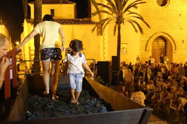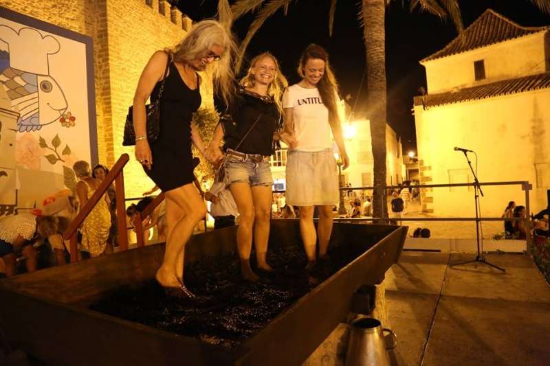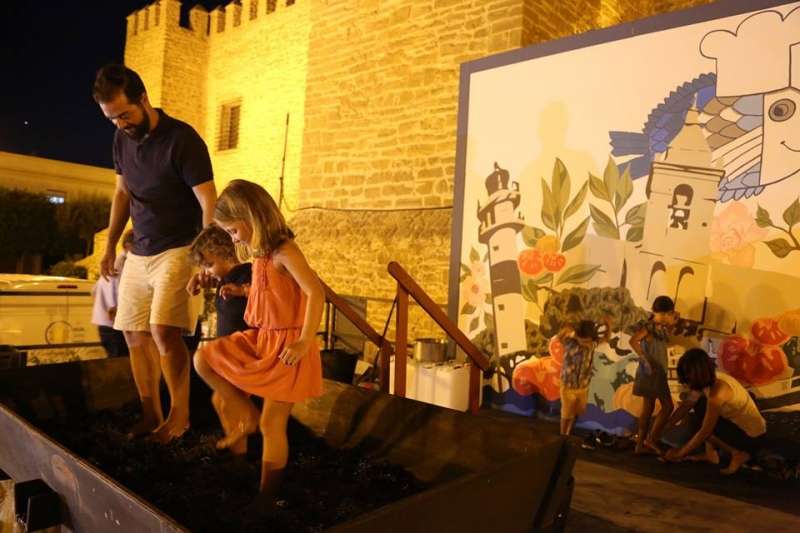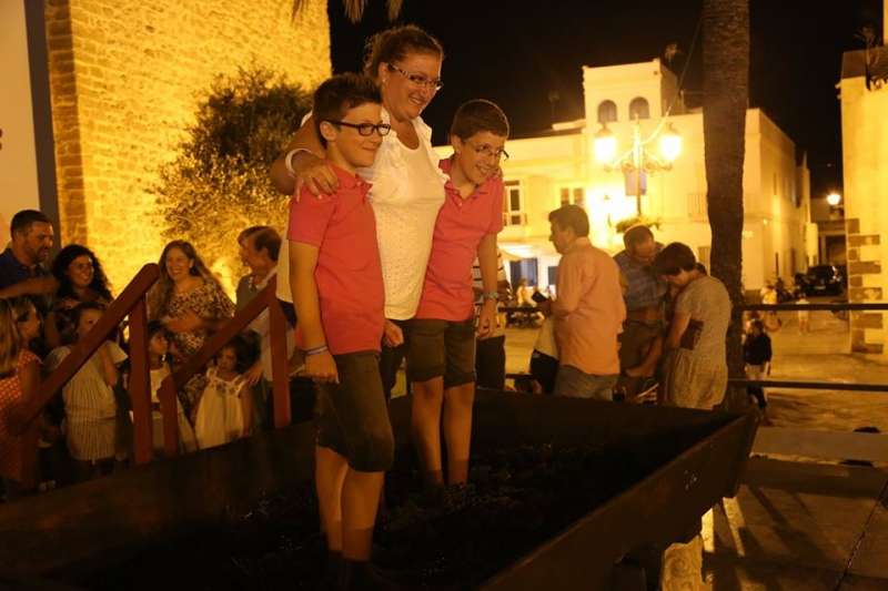 Agosto se despedía ayer con una actividad popular que llamó la atención de roteños y turistas que pasaro por la plaza Bartolomé Pérez donde se instaló un lagar para celebrar la Gran Pisa Popular de uva tintilla con la que se puso el broche de oro a las X Jornadas de la Tintilla de Rota.