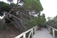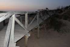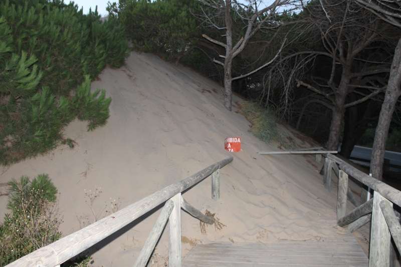 La imagen que presentan algunas pasarelas de madera que sirven de acceso a la playa cruzando los pinares o simplemente para el paseo en este entorno natural, es el motivo por el que el PP de Rota ha manifestado su queja denunciando que en muchos casos, la vegetación y la arena han invadido la propia pasarela sin que desde el gobierno local se actúe.