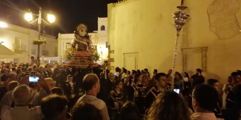 Para mi hubo un detalle que se me saltaron las lagrimas....viendo en la calle la procesion se acerco un chico a una mujer mayor en sillas de ruedas y le dio varias estampas, la mujer se emociono y hablo unos minutos con el chico, mi sobrino que es futbolero me dijo, yo lo conozco tito, es Manuel Doblado ex-jugador y ex-delegado del Jerez Industrial cf, me acerque para preguntar por las estampas y me regalo dos de su Hermandad, Nuestra Señora de Las Angustias de Jerez y le dije porque le regalo a esa mujer las estampas y me dijo...todos necesitamos FE y a Nuestra Madre se llame como se llame para mi fue un bonito gesto el pertenece al grupo de Mayordomia de su Hermandad...ojala mas gente en el mundo como este chaval, me encanto hablar un rato con el. Chapeu por este chico de verdad que ademas veranea aqui hace muchos años. Ojala lo vuelva a ver pronto.