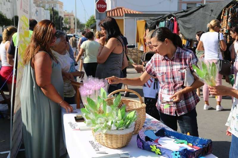 En la mesa se han podido ver algunas manualidades que han elaborado los propios usuarios del centro de alzheimer "Manuela Forja", como flores y abanicos, que se han puesto a disposición de los ciudadanos que han querido colaborar.