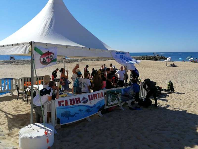 Fue en el tramo de playa conocida como el Caracol donde se montó un campo submarino en el que los organizadores, el Club Náutico URTA, tiraron al fondo del mar unas anillas que posteriormente los participantes tendrían que encontrar y rescatar del fondo marino.