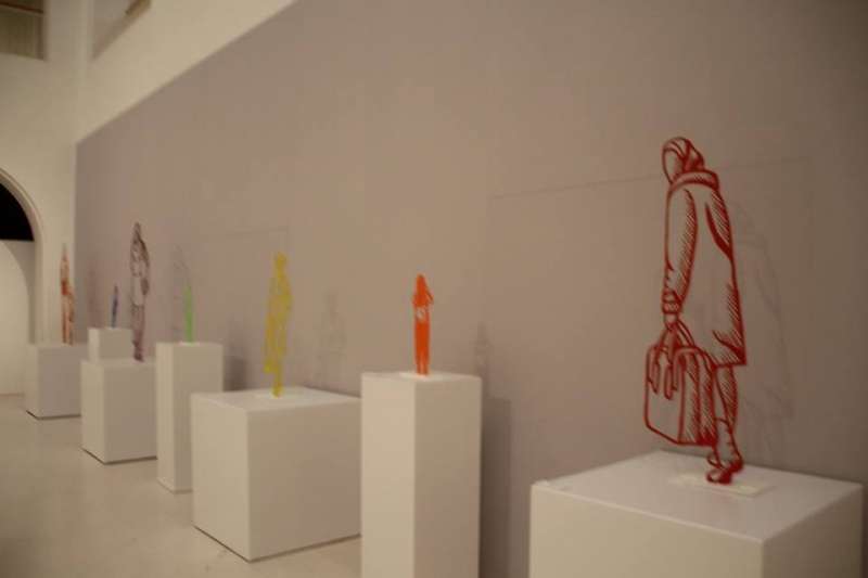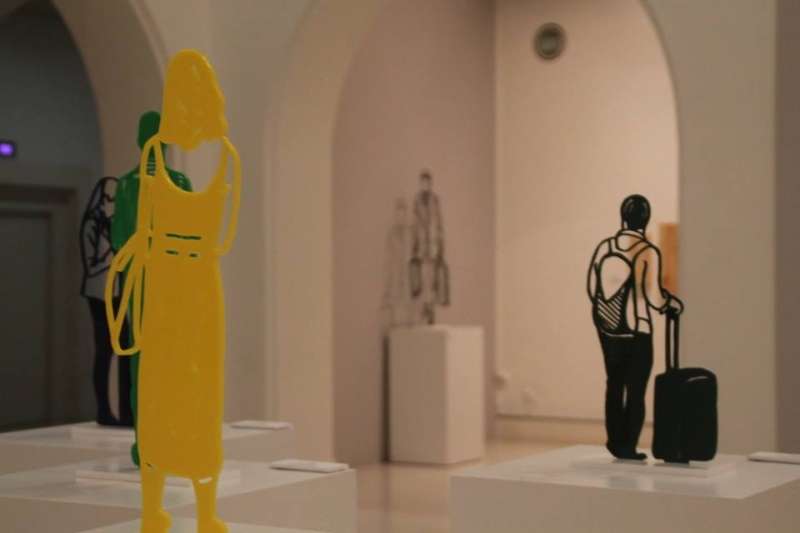 A través de diversas siluetas de personas, viajeros, turistas, migrantes, paseantes sin más, el artista roteño Román Lokati ofrece una visión anónima y a la vez personal del mundo y la sociedad heterogénea y variada en la que vivimos, donde el movimiento y la búsqueda es una constante.