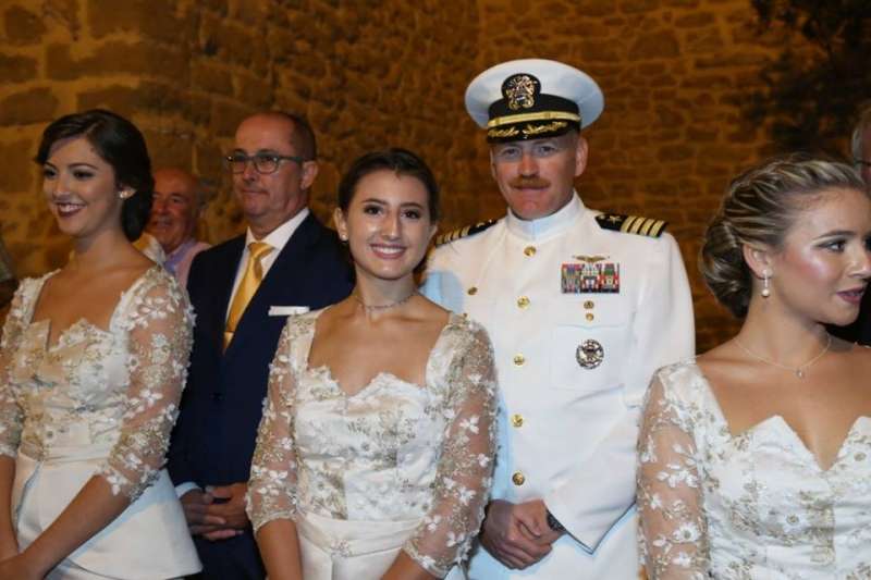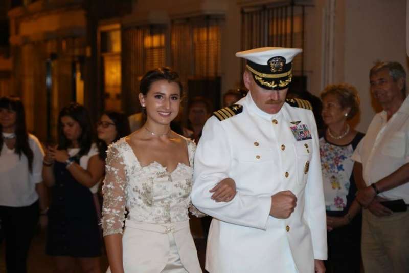 Fue el alcalde de Rota el que tras la lectura del acta procedió a desvelar el nombre de la dama mayor del Rosario 2018 que en este caso, fue Andrea Vázquez de Mora, representante de la Peña Dosa. Aplausos y vítores se escucharon desde el público que esperaba llenando la plaza un momento tan emotivo. Andrea, emocionada, esperó a que la delegada de Fiestas le colocara los atributos que le correspondían y que el alcalde la coronara como tal.