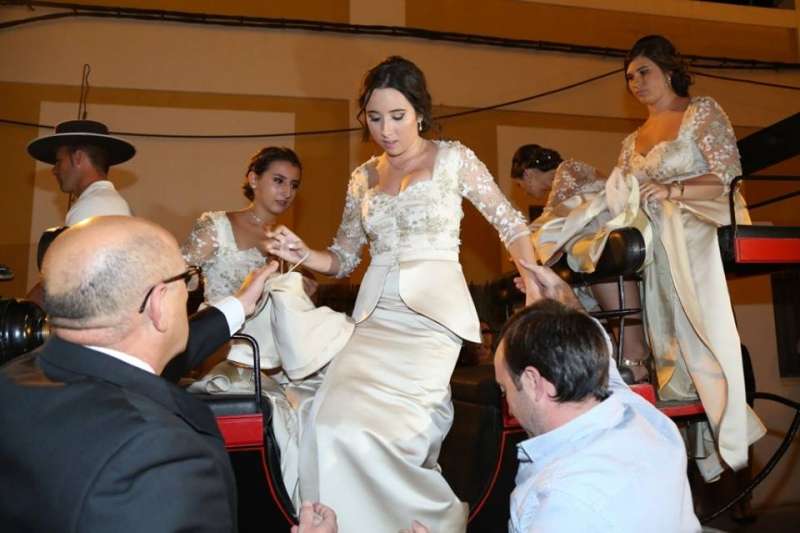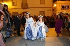 Animadas por un pasacalles infantil previo que partía a las 7 de la tarde del colegio Maestro Eduardo Lobillo, las damas del Rosario que pasearon en coche de caballos, llegaban al Castillo de Luna pasadas las 8 y media, donde las esperaban sus acompañantes para realizar un paseíllo de pocos metros hasta llegar a la puerta principal del emblemático edificio donde esperaba la Corporación municipal y muchísimos ciudadanos que se animaron a salir y presenciar en directo uno de los momentos más emotivos y que más intriga rodea a esta primera noche. Desde que el PSOE e IU entraran a gobernar, quisieron imprimir al acto de coronación el aliciente de saber en ese mismo momento la decisión del jurado sobre quién será la dama mayor de este año, uno de los secretos mejores guardados.
