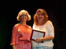 Por último, llegaban el turno de Rolucan en esta Gala del Día de Rota. Una asociación que nacía en 2006 y que en estos años, gracias a la implicación de muchas mujeres, también algunos hombres, ha dado pasos agigantados para ofrecer a los enfermos de cáncer el mejor de los servicios, apoyo moral y profesional. Rota cuenta con esta entidad sin ánimo de lucro que sólo quiere sumar para repartir, por eso, parte de su éxito está en haber logrado en sólo 4 años convocar una carrera y marcha solidaria contra el cáncer a la que se suman casi 3.000 roteños. Parte del dinero que se consigue con esta cita deportiva se dedica a mejorar los servicios que ofrecen con la sala de fisioterapia envidiable y otra parte a la investigación tan necesaria cubriendo así el hueco que la administración no hace. Su vicepresidenta, Juani Montes, agradecía a todas las personas que siempre colaboran con Rolucan su granito de arena, porque gracias a ellas, las personas enfermas de cáncer tienen un refugio en un trance duro. Este año, su satisfacción es doble porque tras tres años, han conseguido gracias al proyecto "Pulseras Rosas" y la Fundación de la Obra Social "La Caixa" poder donar pelo para tener pelucas que reparten entre mujeres con cáncer de mama que no pueden costearse una. Juani Montes, agradecida, animó a participar en la carrera solidaria que tendrá lugar el 20 de octubre en Rota.