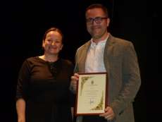 Este año, la gala dedicada a Rota y los roteños, incluía un nuevo premio dedicado al emprendedor. La comisión encargada de otorgar este galardón contaba con tres candidaturas de jóvenes que han montado su empresa en la localidad y algunas han traspasado fronteras con éxito. El ganador ha sido Rafael Vera, de la empresa Verjin Animation Studio, dedicado a la animación infantil, con proyección internacional gracias a los trabajos que ha realizado para empresas cuyos productos tienen difusión en más de 100 televisiones de todo el mundo. Orgulloso de ser uno de los galardonados, este joven ha destacado el esfuerzo que conlleva conseguir sueños y la satisfacción de verlos hechos realidad. En su intervención, ha agradecido al Ayuntamiento este tipo de reconocimientos que incentivan a seguir adelante compartiendo el galardón con su familia, amigos y seres más queridos y allegados. Junto a él como finalistas, estaban Estefanía Harana Suano, con su empresa de asesoría legal EHS y su colaboración con una potente firma en este sector, y Alejandro Ruiz con el portal comercial Enrota.com para favorecer la competitividad de comercios locales en la red. Ambos han recogido también una mención animándolos a seguir con sus proyectos emprendedores para consolidarse.