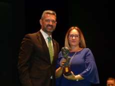 Nuria García Martín-Niño es la empresaria roteña que emigró con 20 años a las Islas Canarias y que el destino ha vuelto a traer a Rota con un proyecto empresarial que ha ampliado la oferta hotelera de la localidad con el recién renovado Hostal Boutique "La Española" en plena calle Charco. Esta mujer, que empezó desde abajo siendo recepcionista hasta llegar a directora de hoteles, fundó hace 5 años su propia empresa con varios hoteles bajo la firma Cool Deluxe Hoteles. Cuando encontró la oportunidad de invertir en Rota lo hizo en este establecimiento al que ha dado un giro de 180 grados. Hoy, en la gala como una de las homenajeadas se sentía orgullosa y emocionada a la vez que agradecida por el gesto del Ayuntamiento. Un homenaje que compartió con su familia y con todos los que le han ayudado en su trayectoria profesional en la que siempre ha tenido como objetivo, mejorar la oferta turística allá donde se implanta.