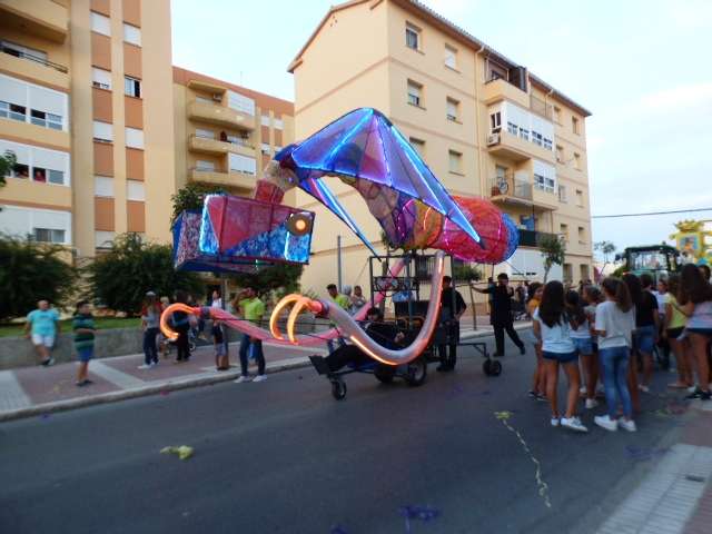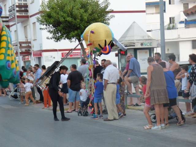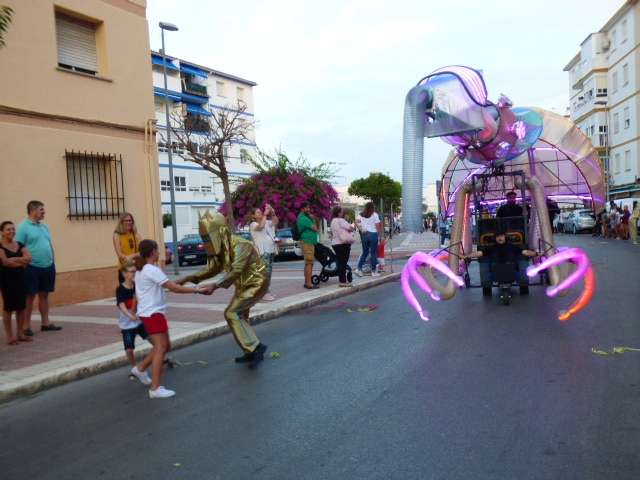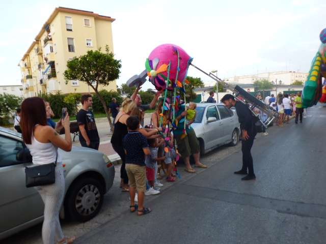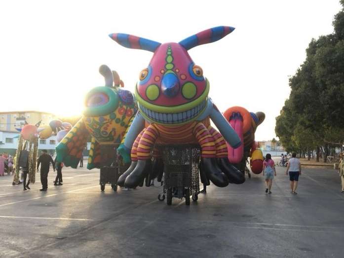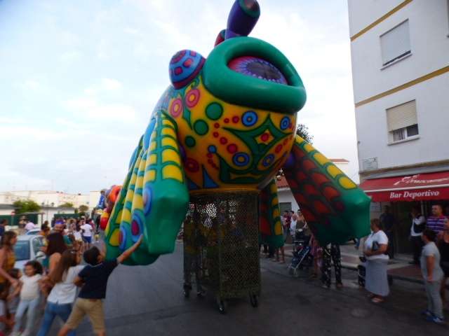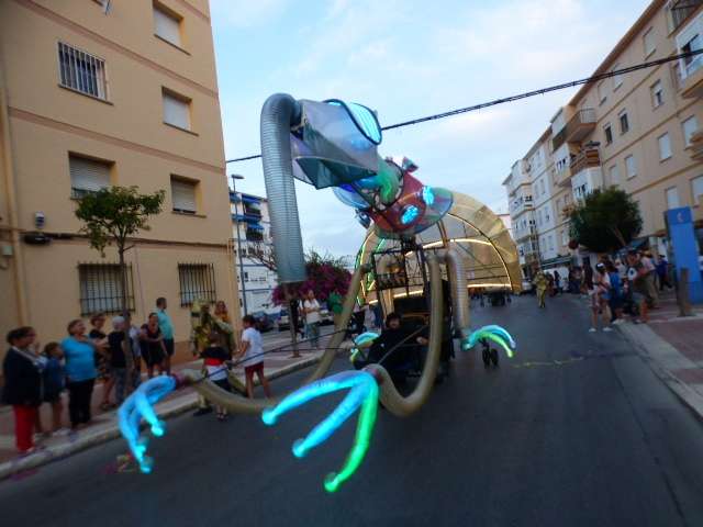 Las buenas temperaturas han acompañado, aunque con cierta humedad, lo que ha hecho que los roteños se hayan tirado a la calle disfrutando de una animación en esta cabalgata muy similar al pasacalles del jueves. Grandes animales han llenado de color y música el cortejo sumándose a ellos unos psicodélicos insectos sonorizados e iluminados que han lucido mucho más cuando ha caído la tarde. La cara de sorpresa y admiración de los niños es de las mejores estampas que deja esta cabalgata que se ha disuelto en la plaza de Andalucía casi tres horas después de su salida.