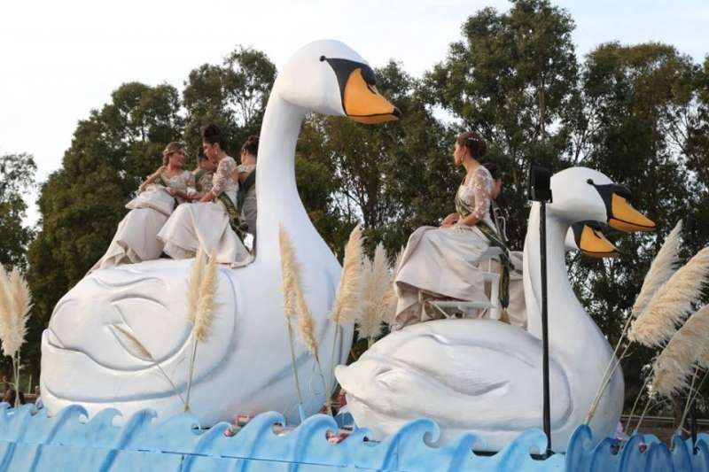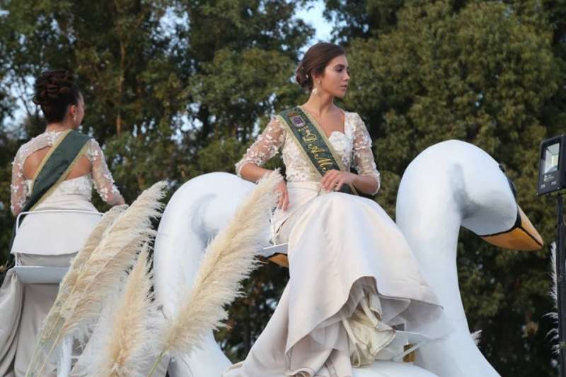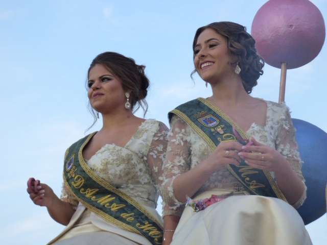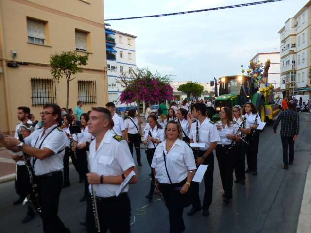 Con la participación de las bandas de música de la localidad, tanto la municipal "Maestro Enrique Galán" como la de la Hermandad de Nuestro Padre Jesús Nazareno, y una representación de la Asociación Musical del Rosario, las damas del Rosario han lanzado serpentinas en las tres carrozas que ha agrupado a las 16 chicas representantes de peñas y entidades, más una carroza propia para la dama mayor y sus pajes.