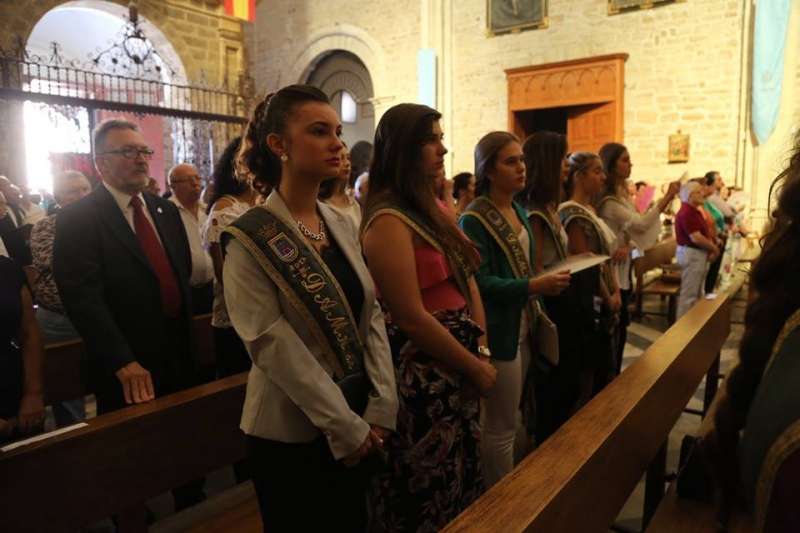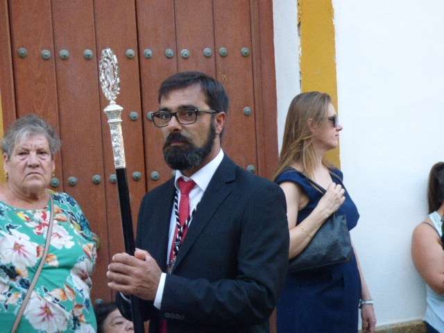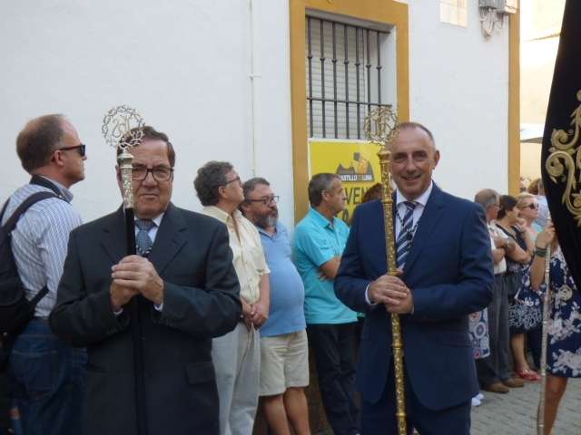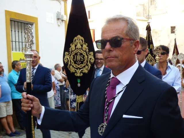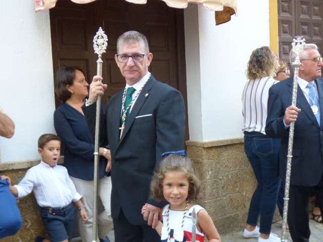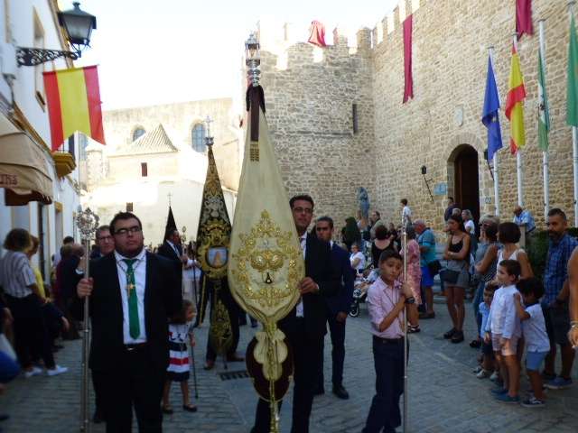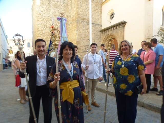 La patrona de la villa, que procesionaba con la Corporación municipal bajo maza, como alcaldesa perpetua, lució espléndida en una tarde de domingo con mucho sol. Con un constante repique de campanas desde la parroquia de Nuestra Señora de la O, partía el cortejo que durante más de cuatro horas y media la ha arropado en una cita anual marcada en rojo en el calendario local. De hecho, este es un día festivo en la localidad, aunque este año, su coincidencia en domingo hizo que se decidiera cambiarlo al viernes y tener así dos jornadas no laborables en estas fiestas del Rosario.