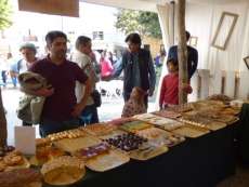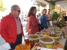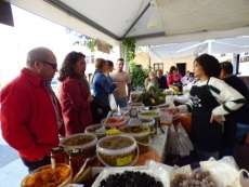 Miembros del gobierno local pasearon por los diferentes stands del Mercado de Tosantos donde hay dulces, flores, decoración, quesos, vinos y encurtidos gracias a la participación de Pastelería "La Rosa", Aceitunas y especias Favi, Frutería Rafael, Viveros "La Ballena", Colmado Santamaría, Picoteo Churros & Chips, "El Bucarito", Marichake, Margarita La Fresca, Mi casapuerta y Divertilandia, a los que se han sumado Algodones y Buñuelos Rocío, que se ubicará en el acceso a la plaza de España.