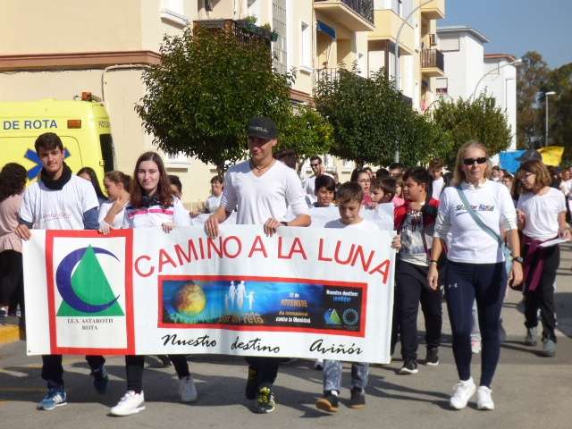 El proyecto "Caminando por un reto", es una actividad fisico-deportiva global creada para contrarrestar la obesidad, el sobrepeso y el sedentarismo. Es un programa gratuito para todos aquellos que quieran sumarse a esta iniciativa, aunque está especialmente dirigido a centros escolares de Primaria y Secundaria. Cada centro participante marca la distancia que quiere recorrer para, multiplicada por el número de personas que la secunden, intentar alcanzar los kilómetros que hay entre la Tierra y la Luna, 384.400 kilómetros. En el caso del IES Astaroth, la distancia era de 5 kilómetros, lo que multiplicado por unas 300 personas que han estado presentes, dan lugar a la distancia imaginaria entre Rota y Aviñón (Francia), unos 1.500 kilómetros.