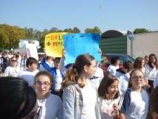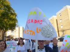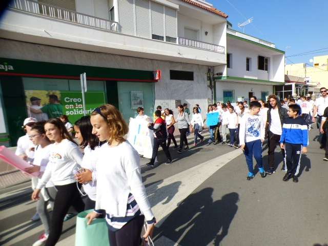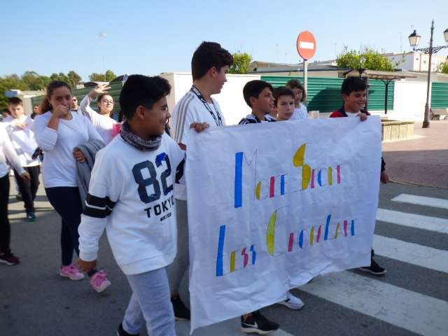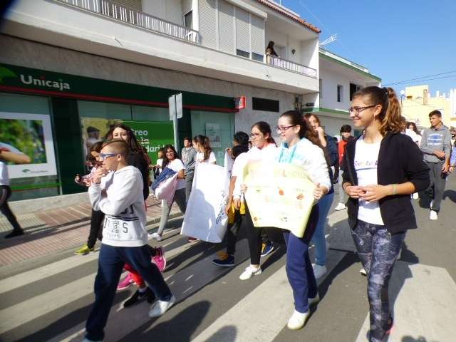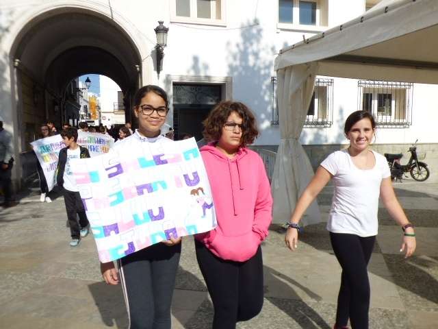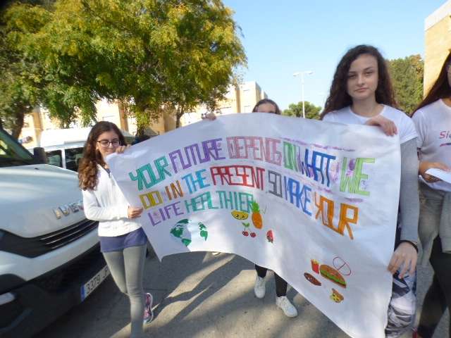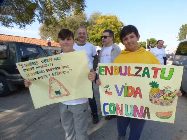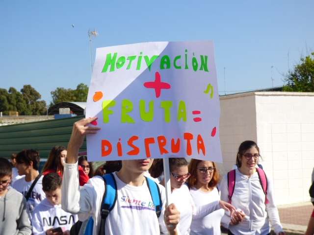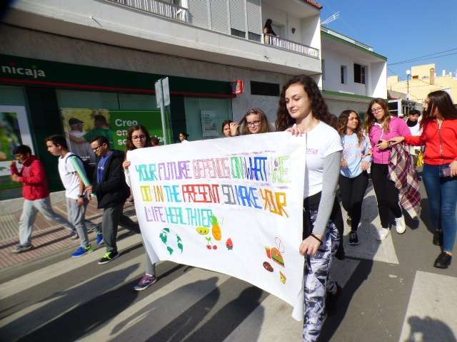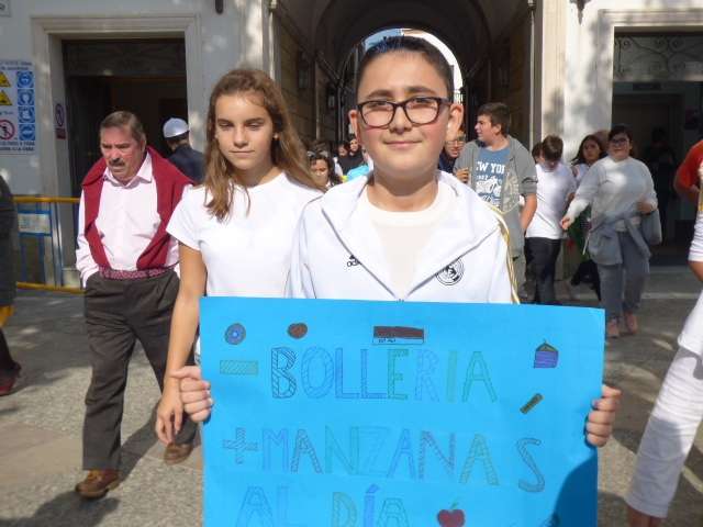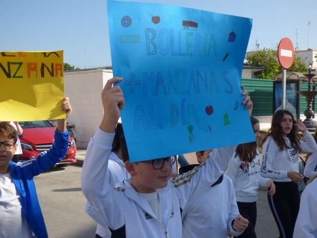 Durante el recorrido, los alumnos han portado pancartas que han elaborado previamente en clase y que eran alusivas a los hábitos de alimentación que hay que tener para prevenir la obesidad. "Si quieres verte bien, ponte anteojos, si quieres sentirte bien haz dieta y ejercicio", "Más manzanas, menos bollería", "Si comes bien hoy tu cuerpo de lo agradecerá mañana", "Endulza tu vida con una fruta" y frases similares, se han podido leer a lo largo del recorrido por calles y avenidas de la localidad.