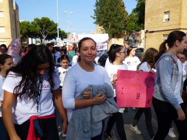 El Ayuntamiento de Rota, a través de las delegaciones de Educación, Protección Civil, Fiestas, Policía Local y Deportes, han colaborado con el centro en el desarrollo de esta marcha que llegaba a la plaza Bartolomé Pérez donde la delegada municipal de Educación, Esther García, y la delegada de Fiestas, Laura Almisas, han querido compartir con ellos este momento.