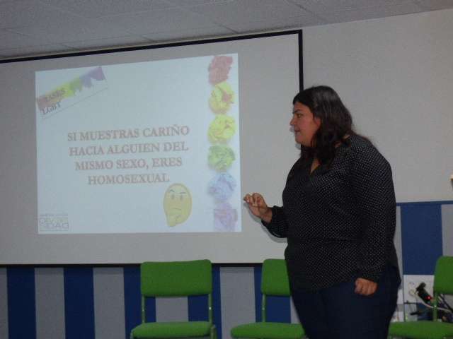 Ha sido Elena Flores, miembro de la federación, la que a través de varias proyecciones, preguntas al alumnado y reflexiones ha hablado a los estudiantes de sexo, género y sexualidad, para que conozcan las diferencias intentando romper con los problemas de homofobia y machismo; ha hablado de los tópicos y palabras que se usan cuando en realidad son insultos como maricón, sarasa, etc., para acabar con ellos; y una tercera parte sobre transexualidad y cuestiones de género, que son complejas y que hacen que haya una discriminación  mayor hacia este colectivo.