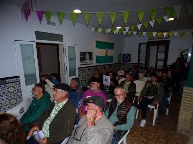 La tarde, tras el corte de cinta simbólico, continuó con una conferencia a cargo de Paco Casero, fundador del SOC, andalucista y ecologista, activista en pro de los derechos de los jornaleros, sobre Andalucía. Casero lleva más de 30 años luchando por los derechos de los trabajadores del campo de manera pacifista destacando la ecología y ayer pudo compartir con los asistentes algunas de sus reflexiones.
