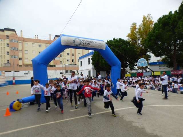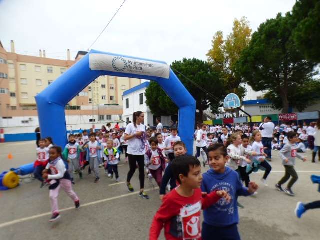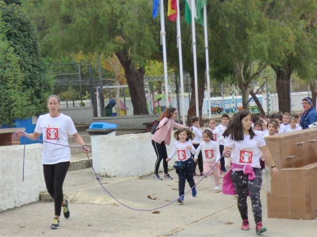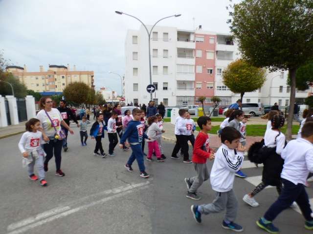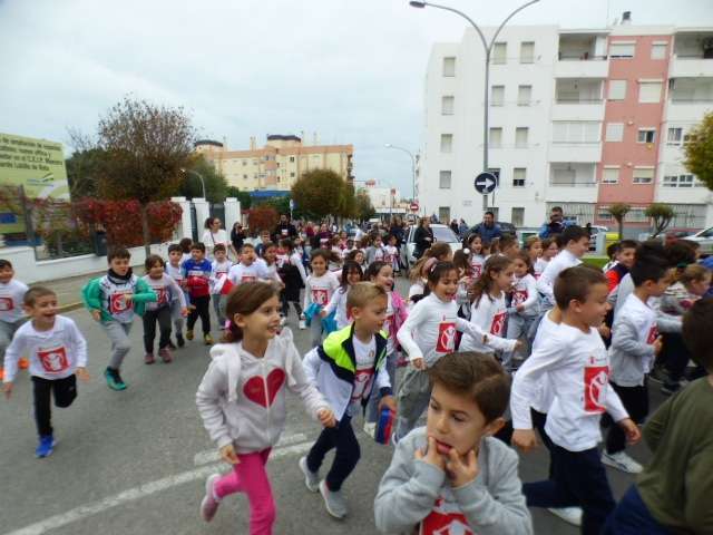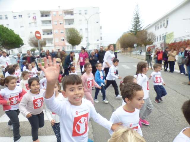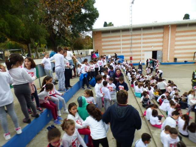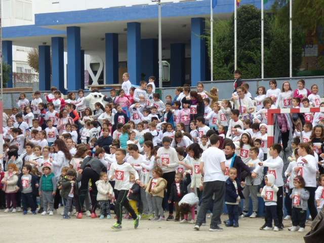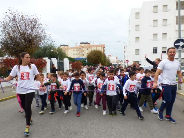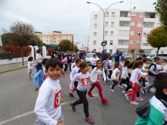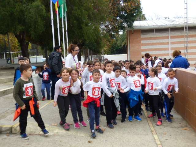 Aunque esta carrera estaba prevista que se celebrara el pasado 11 de noviembre, las lluvias de aquel día impidieron su realización aplazándose a esta mañana donde por clases, los alumnos acompañado de sus profesores, han participado en una iniciativa simbólica y solidaria.