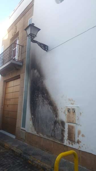 Sobre las 4.30 de la madrugada de ayer, Protección Civil recibió el aviso de la Policía Local para intervenir en un fuego que se estaba produciendo en los contenedores de basura que se colocan cada noche en la esquina de la calle Isaac Peral en su confluencia con Castelar. Un incendio que se sofocó pronto y que ha perjudicado parte de la fachada de la Casa Hermandad de Nuestro Padre Jesús Nazareno, que ha quedado ennegrecida por el humo. Un daño que la hermandad lamenta ya que la pared estaba recién pintada.