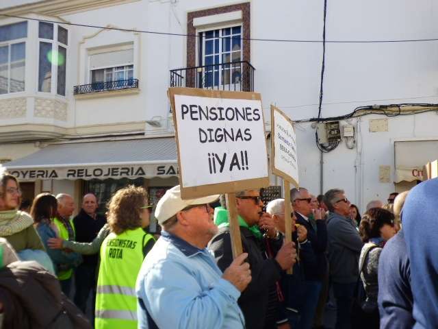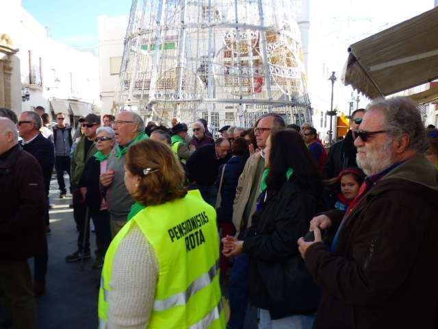 Durante una hora, los pensionistas y otros ciudadanos, entre los que se ha podido ver algunos concejales de Izquierda Unida y Sí se Puede, han gritado alto y claro que quieren pensiones dignas igual que se ha gritado en toda España a través de esta convocatoria hecha por la Coordinadora Estatal por la Defensa del Sistema Público de Pensiones. Al margen de esta concentración puntual a la que han querido sumarse algunos roteños, la plataforma local seguirá manifestándose cada lunes a las 12.00 del mediodía durante lo que queda del mes de diciembre en la plaza de San Roque, y en enero en la plaza de España.