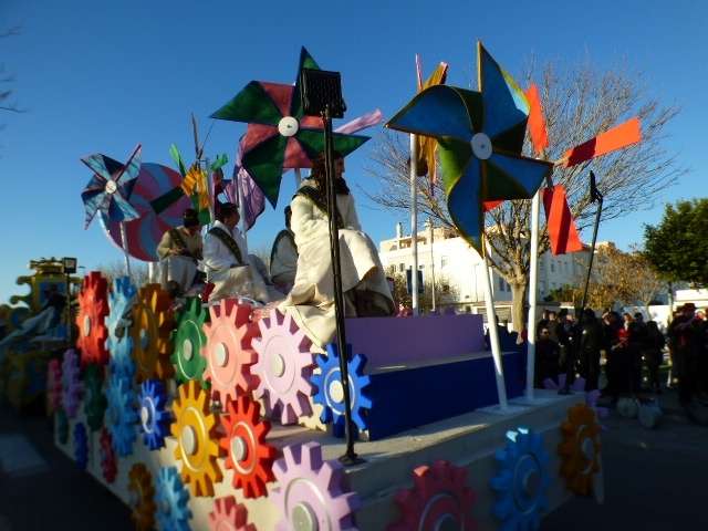 Melchor, Gaspar y Baltasar, acompañados por el Cartero Real, la Estrella de la Ilusión, los pajes, las damas del Rosario, las ninfas, atlantes, sirena y neptuno del Carnaval  han salido a las cinco de la tarde desde la avenida de la Pólvora en una comitiva compuesta por doce carrozas decoradas desde las que se han lanzado miles de kilos de caramelos, más de 7.000 pelotas y otros tantos miles de peluches y pequeños juguetes que son, sin duda, la sensación de la Gran Cabalgata de la Ilusión.