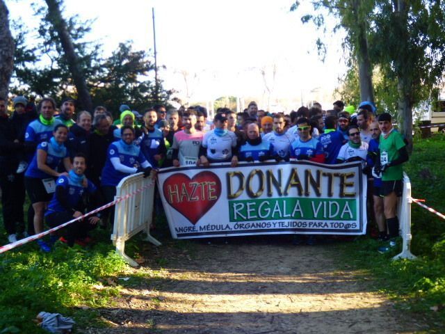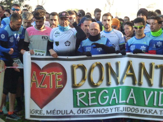 Antes de iniciarse la carrera por la zona de pinares, todos los corredores han posado con la pancarta de la campaña de donación de órganos, sangre, tejido o médula "Hazte donante, regala vida", que lidera el roteño José Ignacio Ruiz-Herrera. Tras la foto inicial, ha comenzado la prueba por un circuito de 3 kilómetros al que ha habido que darle dos vueltas. Los participantes han soportado bien las subidas y bajadas propias de la orografía del terreno y han aguantado las bajas temperaturas.