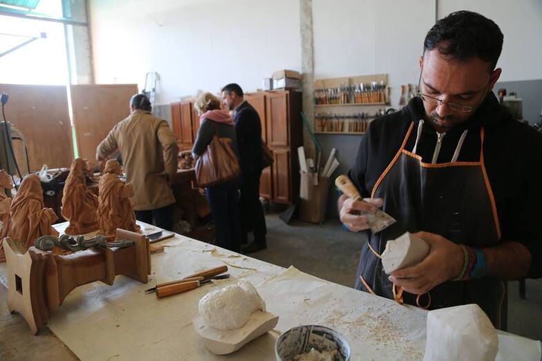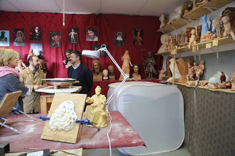 El alcalde visita el taller del imaginero roteño Miguel Ángel Caballero Pérez