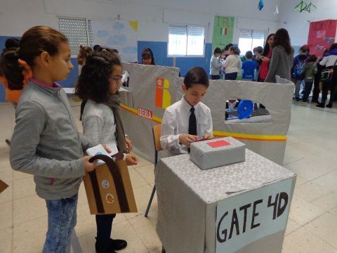 Todo el alumnado del centro, desde los tres años a 6º curso, ha pasado por este aeropuerto y por sus diferentes departamentos, aprendiendo las pautas que conlleva coger un avión, compra de billete, pasar por los controles de seguridad, la validación de billetes y subir al avión, donde les explican, todo ello en inglés, las normas de seguridad, habla el capitán del vuelo y pasa el carrito de la comida.