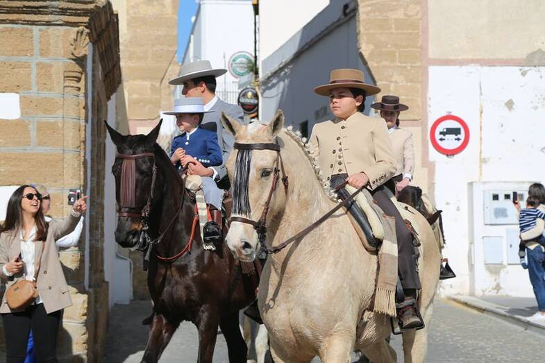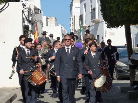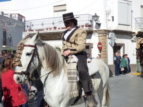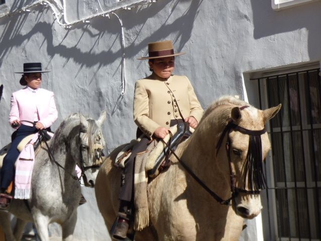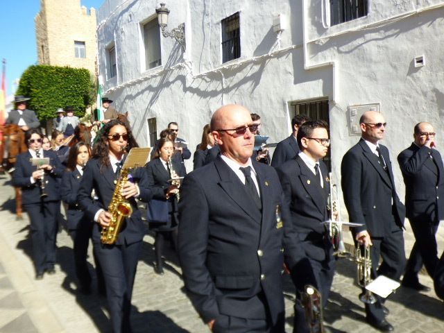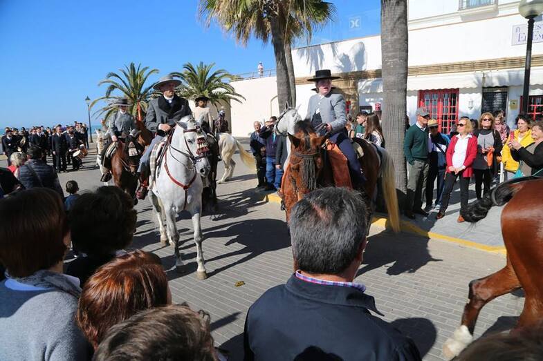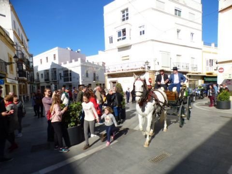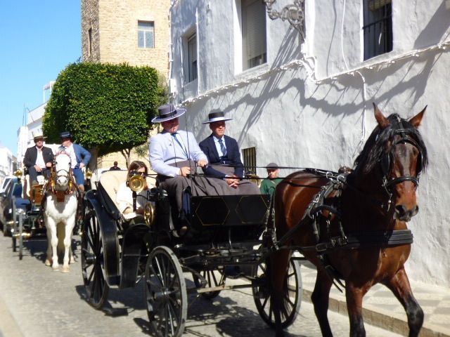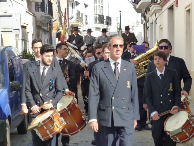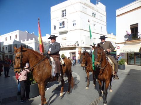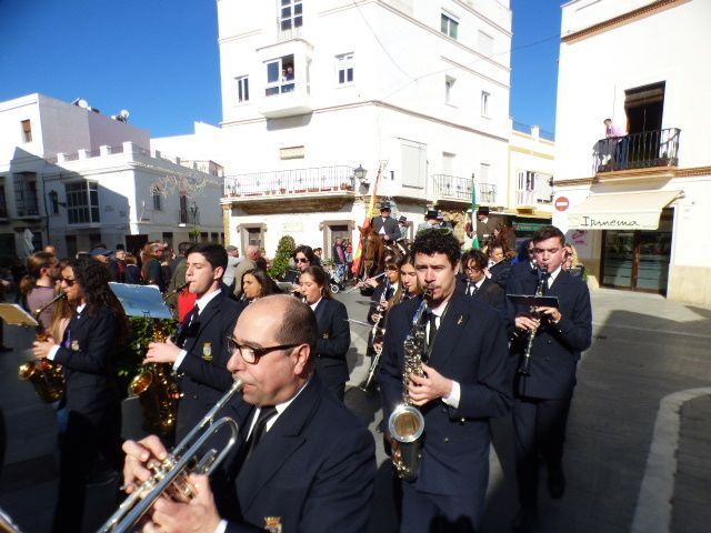 Muchos ciudadanos se han sumado a esta convocatoria en la que también estaban los miembros de la Corporación municipal, junto a otras autoridades civiles, para disfrutar del pequeño paseo de caballos, este año más reducido con solo una decena de caballistas y dos coches de caballos, y de los acordes que iba interpretando la banda municipal de música "Maestro Enrique Galán".