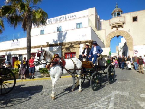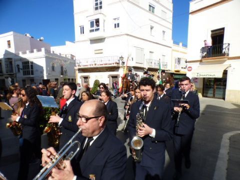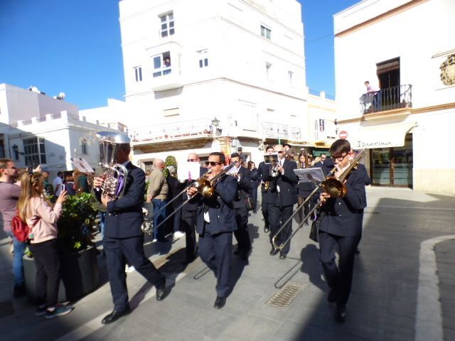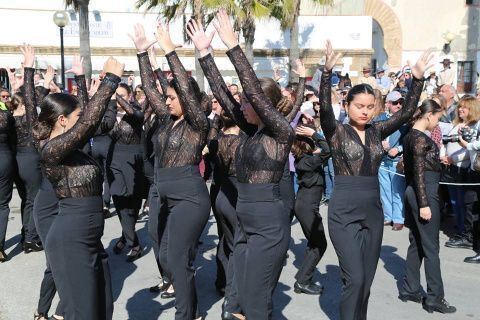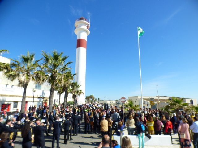 Tras los acordes del himno andaluz y del nacional, el flamenco tomaba el testigo de manos de la bailaora Ofelia Márquez que con sus dos grupos de baile, "Solera" y "Valientes", que engloba a alumnas jóvenes y adultas, han bailado para deleite del público numeroso agolpado en torno a la zona del embarcadero, entrada al muelle pesquero de Rota.