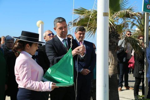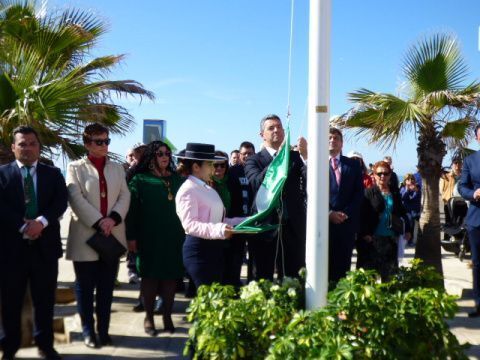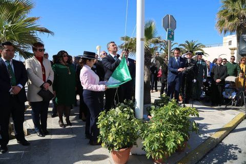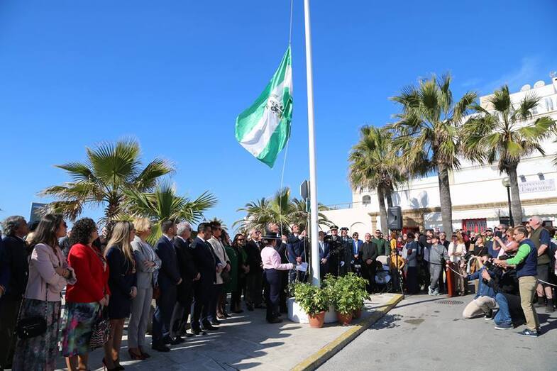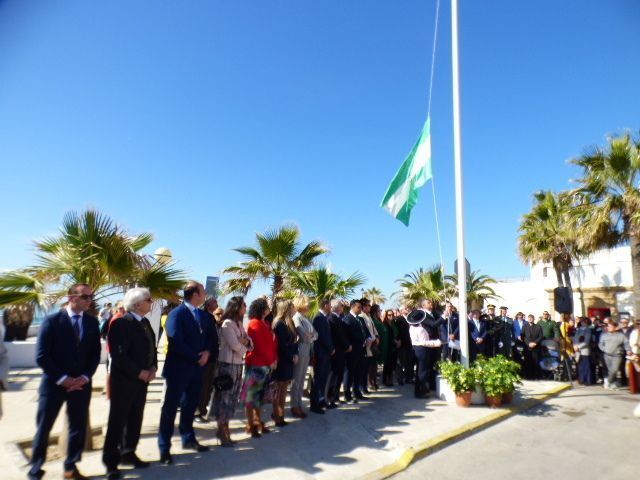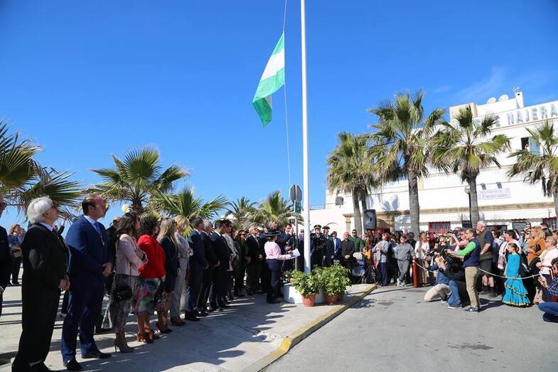 Han sido el alcalde de Rota, Javier Ruiz, junto a una joven amazona, el que se ha encargado de izar la bandera de Andalucía que ondeará durante todo el día en señal de la jornada festiva que hoy se vive en la región andaluza.