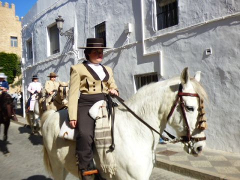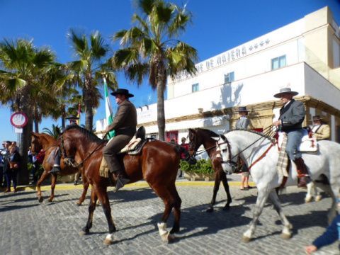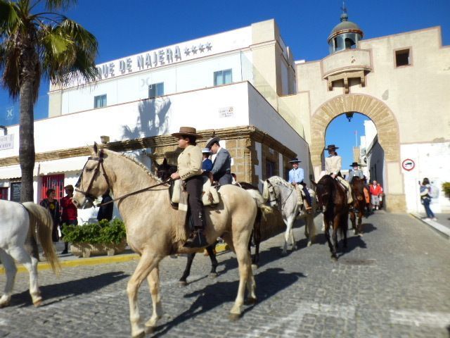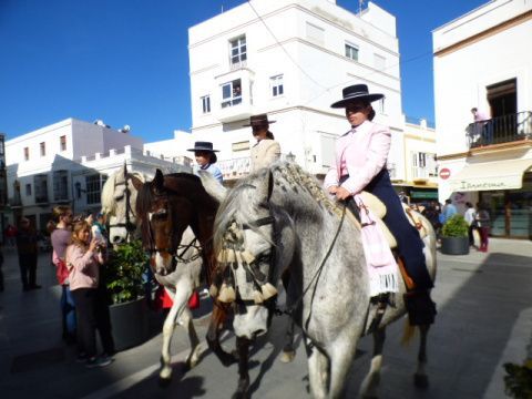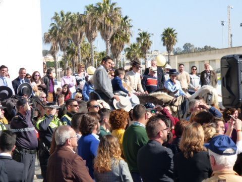 Pasadas las once de la mañana, una pequeña representación de caballistas de la asociación "La Posada" llegaba al casco histórico haciendo parada en la zona del muelle pesquero, junto al faro, donde este año se elegía centrar los actos del 28F.
