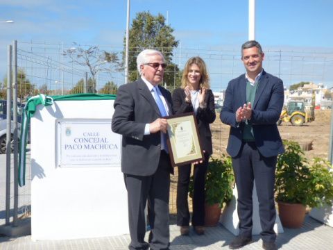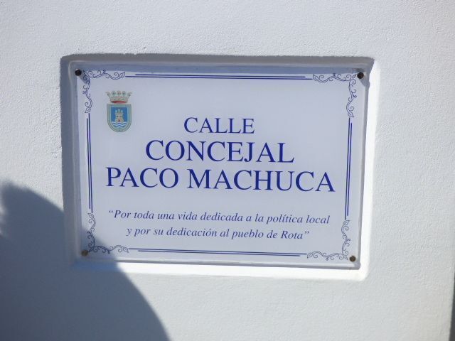 Su calle, situada en la zona de los nuevos suelos, junto a calles dedicadas a otros políticos que defendieron los valores democráticos o se implicaron en la política local, es una forma de dejar constancia en vida de la labor de este roteño al que el delegado de Limpieza Viaria agradeció su colaboración directa para que Rota esté siempre en los mejores niveles de limpieza. Como concejal que en su día tomó el testigo de Paco Machuca, José Antonio Medina destacaba las horas dedicadas por su antecesor a esta tarea y sobre todo, su actuación siempre al margen de estrategias políticas y solo mirando por el pueblo al que ama, acercándose personalmente a comentar alguna deficiencia al delegado de turno. El delegado de Limpieza Viaria aprovechó el momento para reconocer el compromiso de la delegación que dirige y que en gran parte, es un legado que dejó Paco Machuca. Un hombre, que cuando era concejal, se levantaba a las 5 de la mañana para supervisar aquellas zonas de Rota donde había que actuar con mayor prontitud. Su carisma afable, amistoso y comprometido, le han llevado a ser hoy protagonista de un acto en el que su nieto Rafael ha tomado la palabra por él.