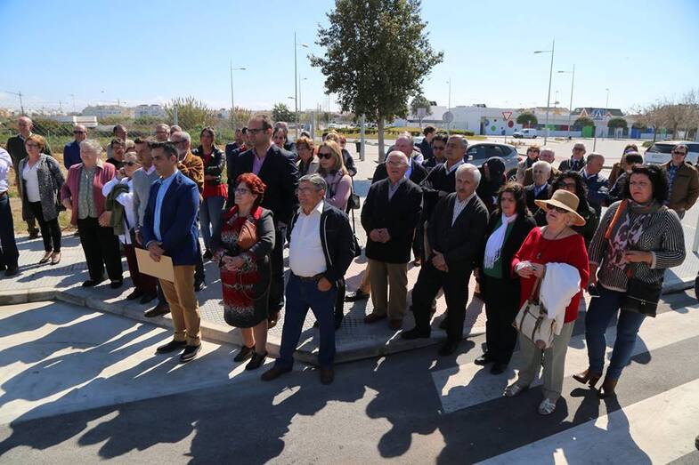 Muy emocionado, al punto de prácticamente no poder hablar, ha visto rotular una calle con su nombre en la zona de los nuevos suelos, rodeado de su familia, de compañeros de Corporación y de partido, así como de amigos que han querido acompañarle en un momento tan especial para él.