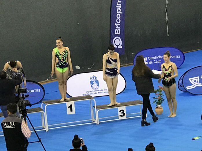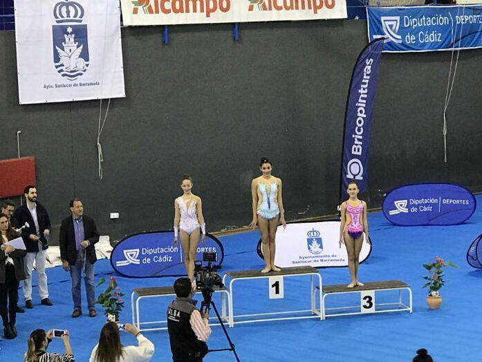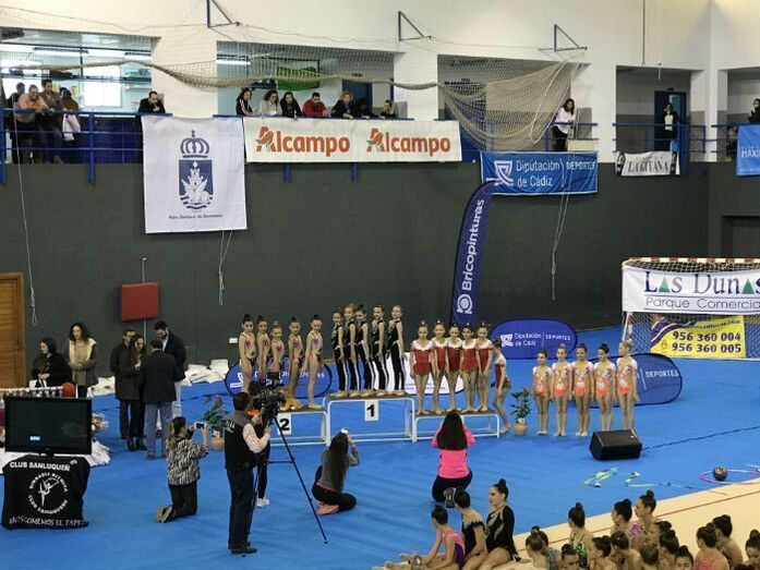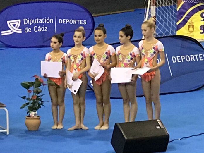 Desde las 10.00 hasta las 16.00 horas, fueron pasando por el tapiz gimnastas de varios clubes andaluces que dieron lo mejor de sí. Entre ellos, estaba la entidad roteña que estuvo representada por alumnas de las categorías promesa, pre-copa y copa que consiguieron traerse de vuelta a casa algún premio tras su buena actuación. Fue el caso de Sara Arana que se posicionó primera de su categoría, y el conjunto alevín compuesto por Marina Hurtado y Yaiza Delgado, que se posicionó en cuarto lugar. También tuvieron una actuación brillante Alicia Villarrubia y Blanca Hernández.