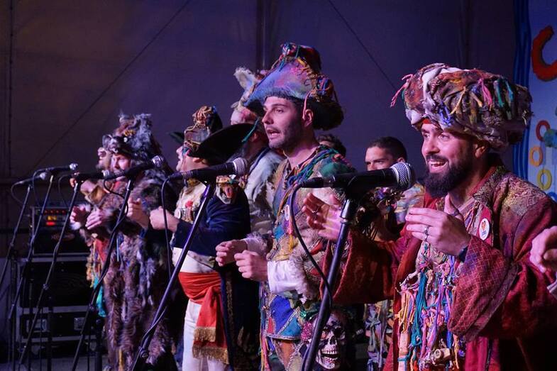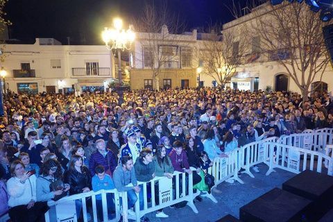 Roteños y visitantes hicieron un parón en la jornada para llenar una plaza de España repleta de público que vibró con el que fue un plato fuerte de este Carnaval. La constante interacción del grupo con el público y los estribillos carnavalesca.