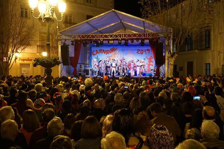 A medida que iba pasando la tarde, más numerosa era la presencia de público en la calle y por la noche, se vivió un momento clave con la actuación de la comparsa de Martínez Ares, "Los Carnívales", que pasadas las 21.30 horas actuó en la plaza de España.