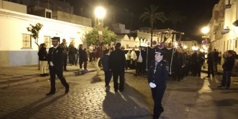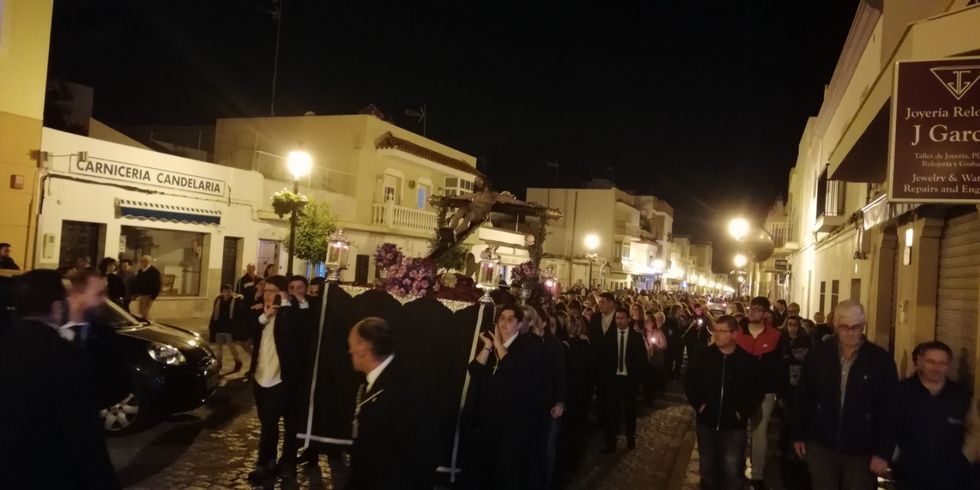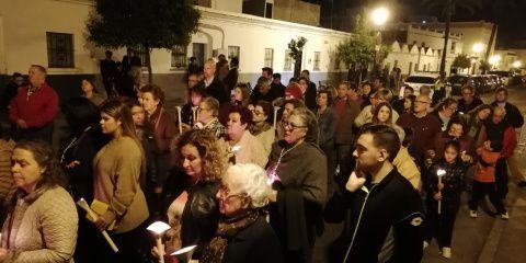 Representantes de todas las hermandades de la localidad,  representantes de Protección Civil como hermano de honor, fieles detrás de la parihuela y el acompañamiento de la capilla musical Lux Aeterna, se fueron recorriendo las calles de los alrededores de la barriada de El Molino durante un par de horas rezando las 15 estaciones en las que los cofrades recuerdan los momentos y sufrimientos vividos por Jesús desde que fue prisionero hasta su muerte en la cruz y posterior resurrección.