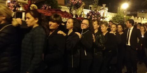 Portado en una parihuela que llevaron miembros de las cuadrillas de costaleros del Cristo del Amor y las cargadoras de la  Esperanza del Calvario, esta imagen del Lunes Santo recorrió fundamentalmente, las calles de la barriada de El Molino, el barrio que vio crecer a la Hermandad del Amor a la que este año, le tocaba organizar este viacrucis cuaresmal.