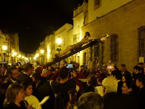 [Img #109449]Con unas temperaturas muy agradables después de un caluroso día, fueron muchos vecinos y cofrades los que se acercaron a acompañar al Cristo del Amor en esta representación del calvario que sufrió Jesús.