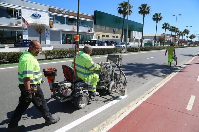 Varias calles y avenidas de la localidad se están beneficiando de un importante proyecto de pintado de la señalización horizontal que desde el Ayuntamiento de Rota se está llevando a cabo con la intención de mejorar la seguridad y las condiciones de estas vías para conductores y peatones.