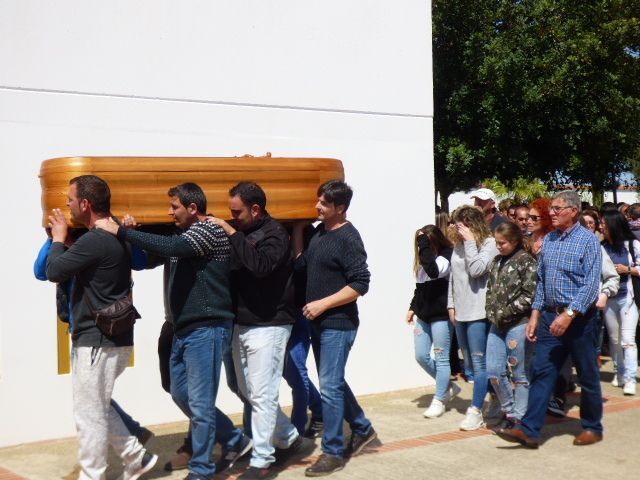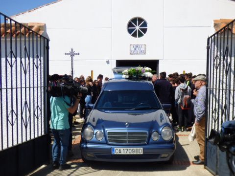 A las 13.30 horas ha llegado el féretro con el cuerpo de Marcos, el silencio solo roto por comentarios de dolor y algún llanto, es lo que se ha podido escuchar en una mañana triste, muy triste para Rota. Amigos y familiares de este joven piloto que ha visto truncada su vida demasiado pronto, han portado el ataúd para llevarlo al interior de la capilla de la Santa Cruz en el propio cementerio municipal. Un grito de "¡Campeón!" ha roto el silencio seguido de un aplauso. Ya en el interior de la capilla, a rebosar de gente, entre los que se encontraban autoridades civiles y militares además de muchos roteños, se ha celebrado el responso para desear vida eterna a este joven roteño.